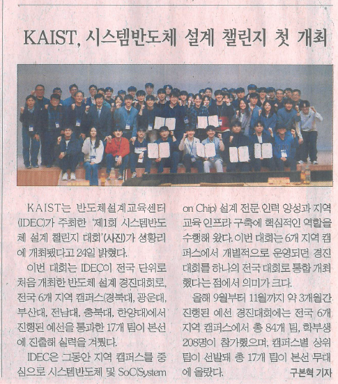 | [기사] KAIST IDEC, 전국 단위 시스템반도체 설계 챌린지대회 첫 개최+지면기사 추가 | 2025.12.24. 18:14 |